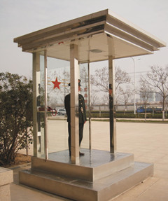 簡介—— 玻璃崗亭的工藝:立柱用80x80x1.5mm不銹鋼立柱,地板為3mm防滑鋁板,外封板為1.2mm不銹鋼板,吊頂為高級PV